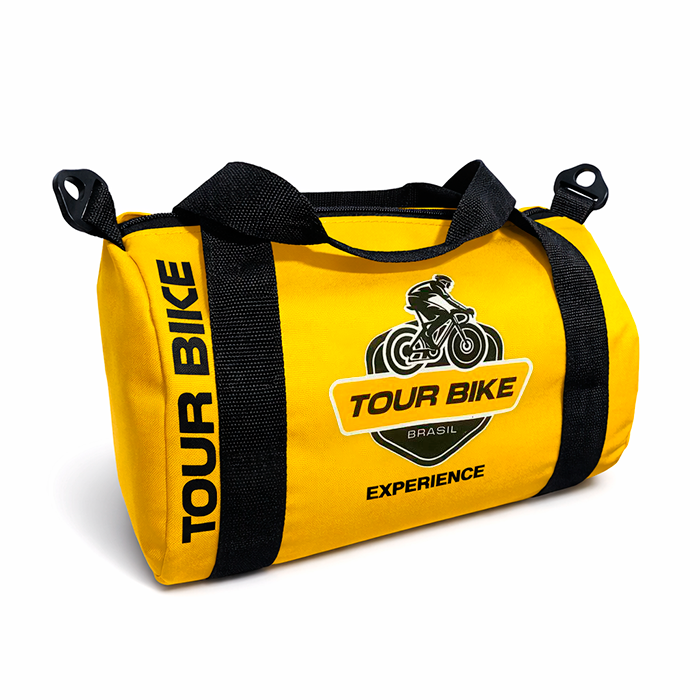 Descrição: Bolsa de viagem customizada CB 005 confeccionada em nylon oxford, material resistente e de excelente durabilidade. Possui estrutura cilíndrica funcional, alças reforçadas em cadarço e alça transversal ajustável, proporcionando praticidade e conforto no transporte. A personalização é aplicada conforme a identidade visual do cliente, com possibilidade de ajuste nas cores do material e dos acessórios, garantindo total alinhamento ao projeto.