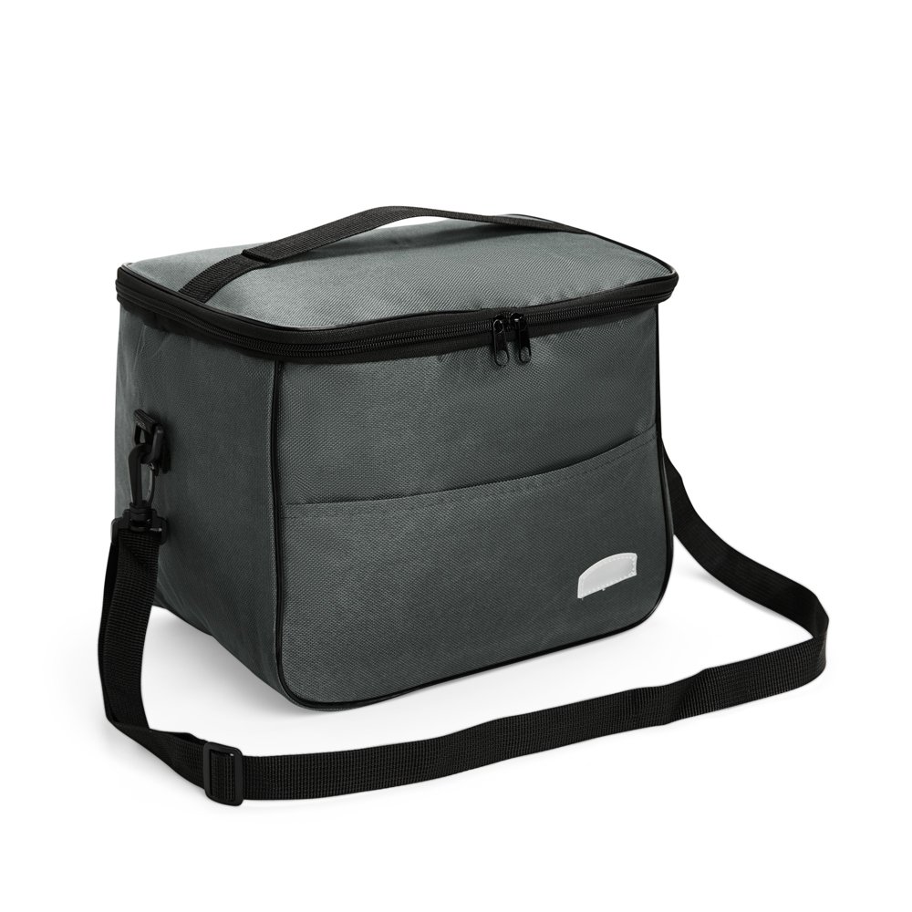 Descrição: Bolsa térmica 13 litros CB 18959 feita em Oxford resistente à água, com fechamento em zíper. Possui revestimento térmico em folha de alumínio, bolso frontal externo e duas alças: uma fixa localizada na tampa e outra transversal removível.