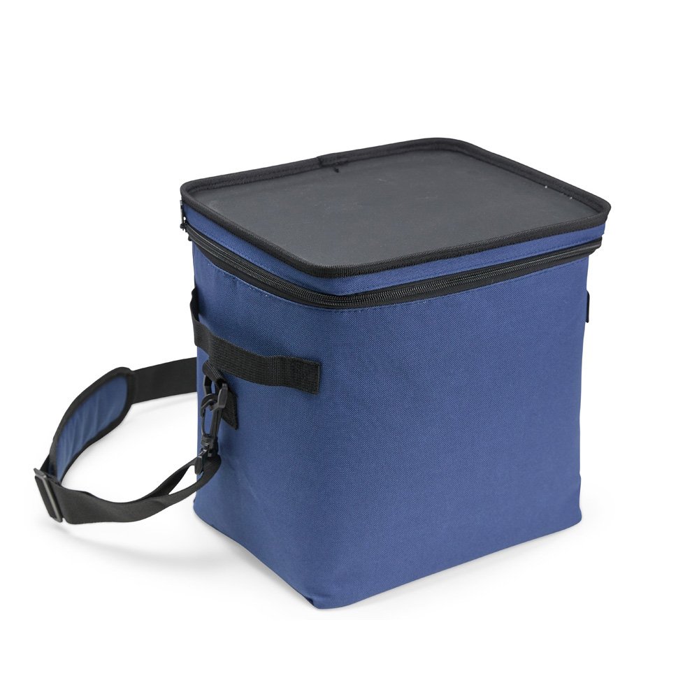 Em segundo lugar, o design funcional traz diferenciais importantes, como a tampa rígida que também pode ser usada como bandeja, tornando o uso muito mais versátil em refeições ao ar livre ou em situações que pedem conveniência. Além disso, o modelo apresenta alças laterais para transporte manual e alça transversal removível com ajuste e suporte de apoio, proporcionando conforto e mobilidade.