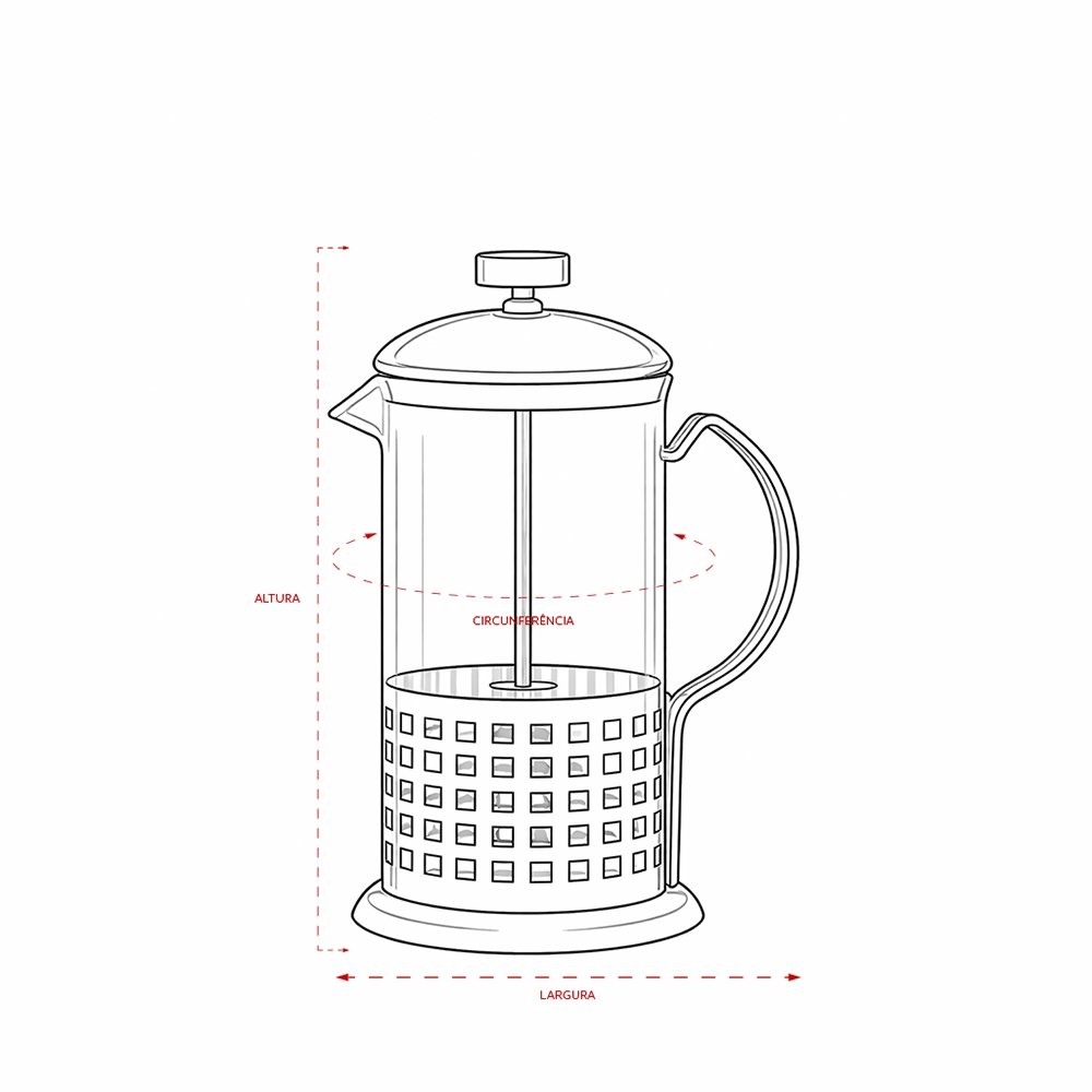 Em segundo lugar, a tampa com êmbolo e tela em inox assegura filtragem eficiente, preservando aroma, corpo e intensidade da bebida de forma prática e intuitiva. Dessa maneira, o preparo se torna simples e padronizado, ao passo que a capacidade de até 600ml atende tanto ao consumo individual ampliado quanto ao compartilhamento em pequenas reuniões. Com dimensões aproximadas de 20,5 cm x 13,6 cm x 9 cm e peso médio de 323 g, oferece equilíbrio entre robustez e mobilidade.