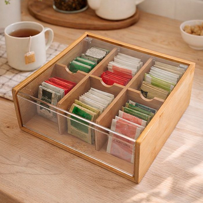 Em segundo lugar, os seis nichos internos ampliam a capacidade de organização, facilitam a separação dos sachês e mantêm todo o conteúdo visível e acessível. Dessa forma, o produto otimiza a rotina, agiliza o uso diário e se adapta facilmente a cozinhas residenciais, escritórios, copas corporativas e áreas gourmet. Ao mesmo tempo, a combinação de materiais simplifica a limpeza e garante praticidade contínua.