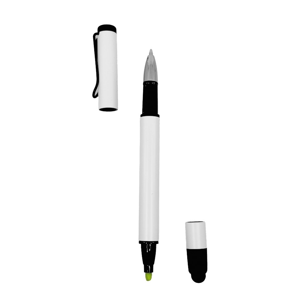 Em segundo lugar, sua versatilidade amplia significativamente a usabilidade no dia a dia, já que reúne três funções em um único item: caneta esferográfica com escrita azul, marca-texto e ponteira touch screen para tablets e smartphones. Dessa forma, o usuário ganha praticidade em diferentes contextos, seja em reuniões, estudos ou uso digital, o que potencializa a frequência de uso e, consequentemente, a exposição da marca.