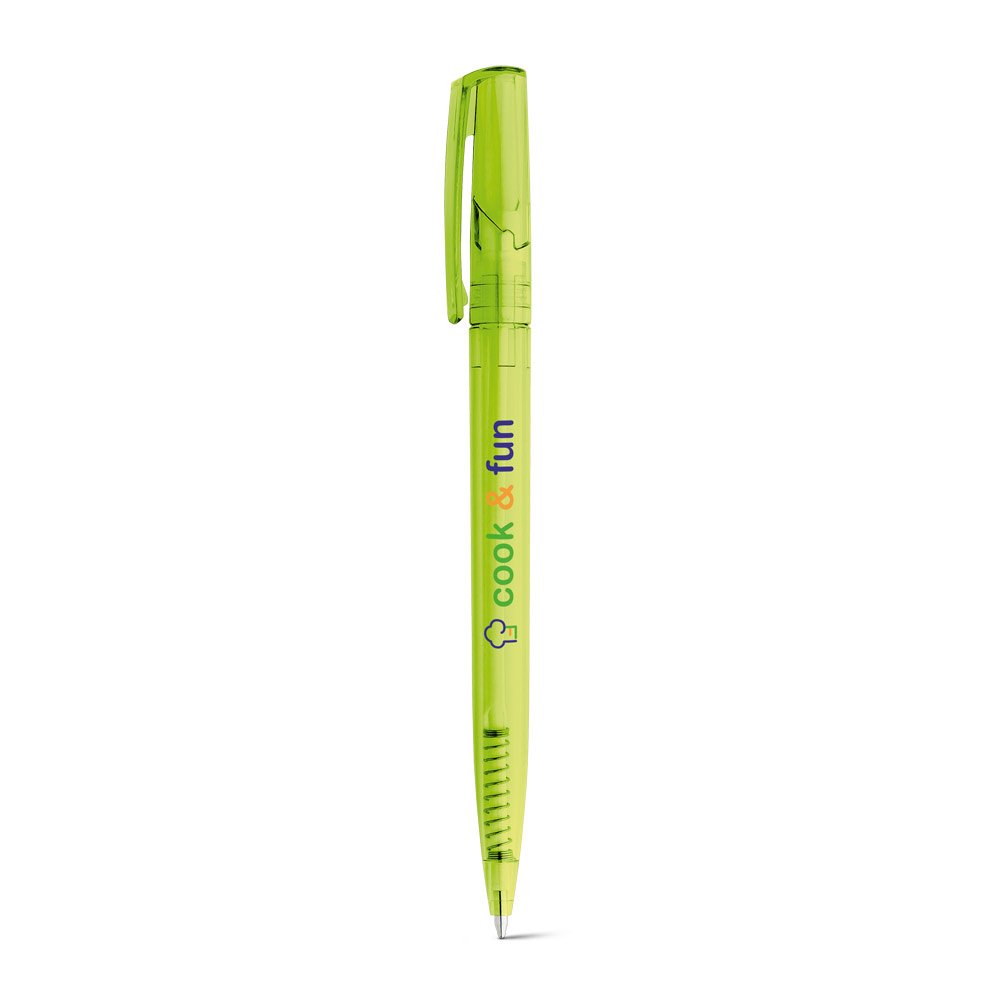 Caneta plástica CB 81108 esferográfica em plástico ABS com acabamento translúcido e mecanismo twist. Possui até 1,5 km de escrita.