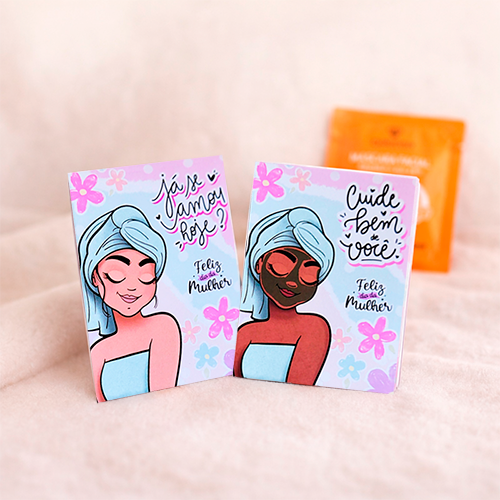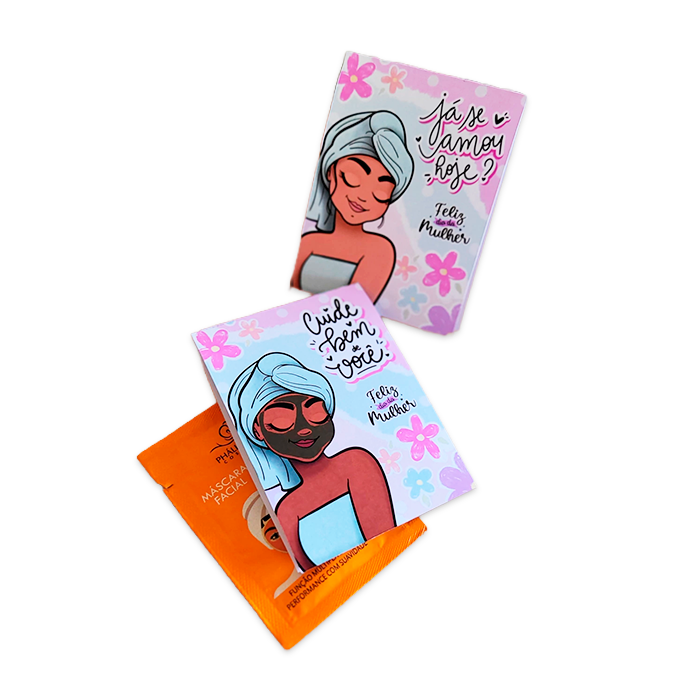 Descrição: Cartão com máscara facial é uma solução estratégica para ações comemorativas, unindo cuidado, bem-estar e comunicação de marca em um único material. Com formato compacto, permite destacar mensagens institucionais, campanhas promocionais ou ações de endomarketing de forma elegante e memorável. Acompanha máscara facial enviada de forma aleatória, conforme disponibilidade de estoque, garantindo praticidade logística e rápida execução da ação.