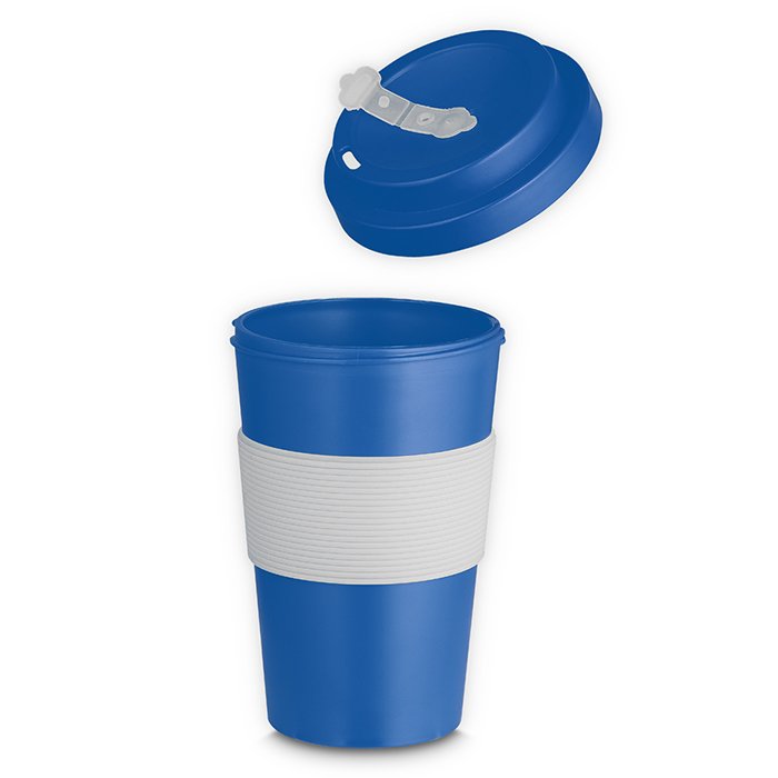 Descrição: Copo plástico 400ml CB CO 023 produzido em plástico RPET, com tampa rosqueável e detalhe em silicone.