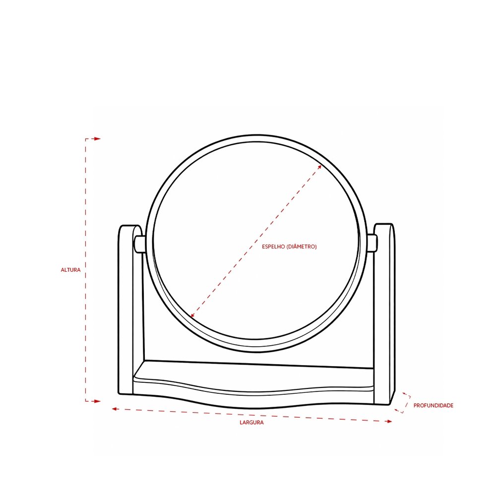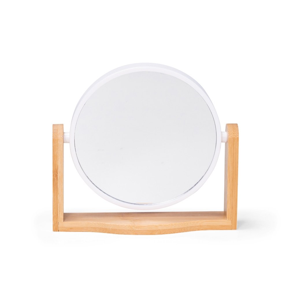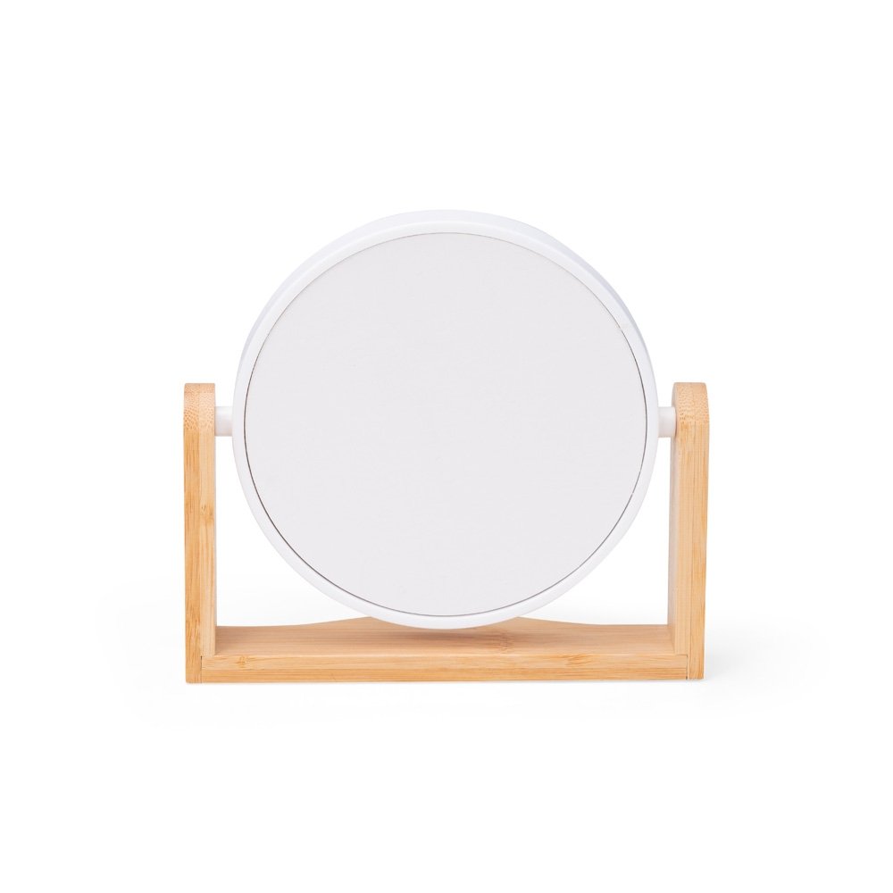 Descrição: Espelho de mesa CB 19100 giratório com base em bambu e moldura em plástico.