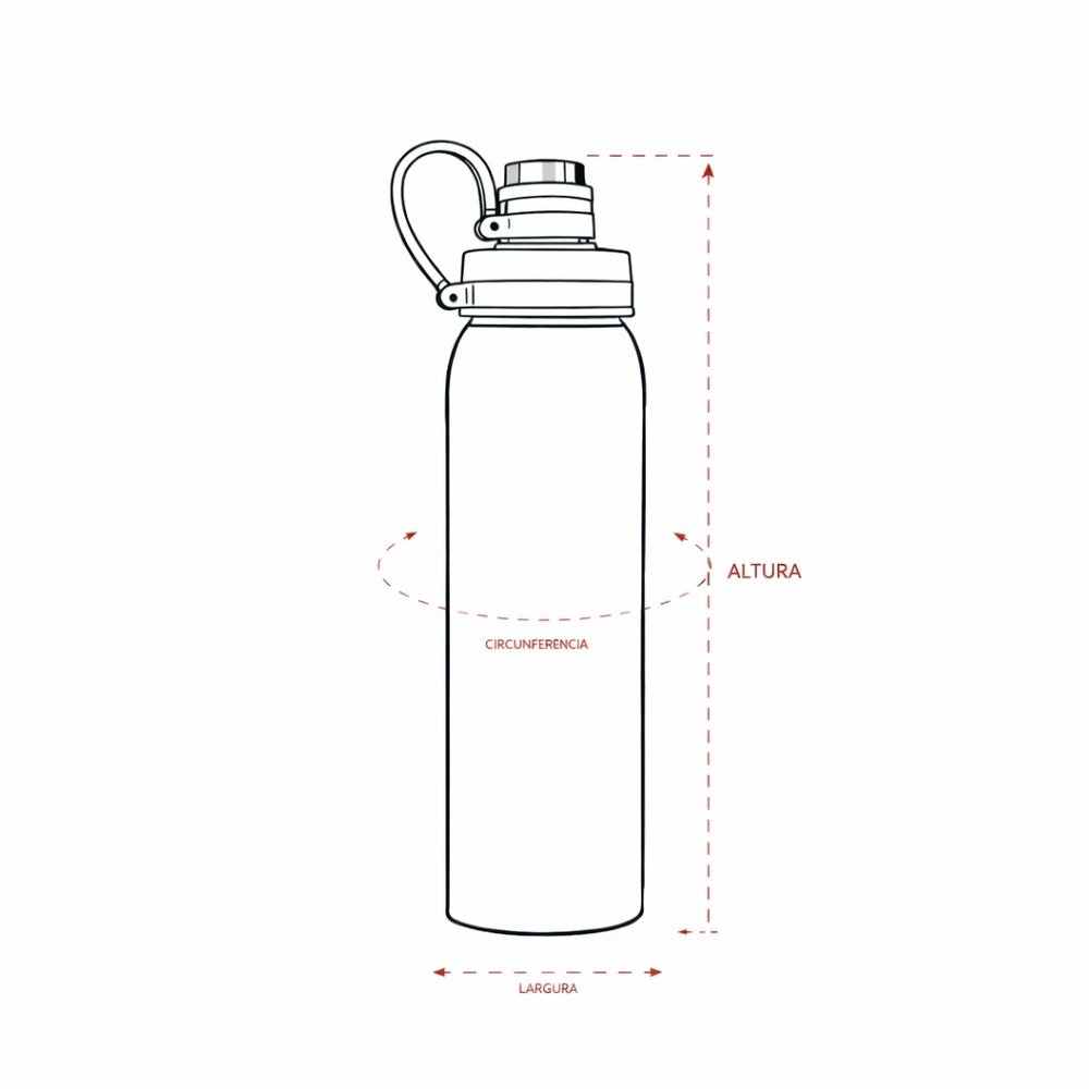 Em segundo lugar, a alça fixa em silicone amplia a praticidade no transporte, ao passo que a capacidade de 800ml atende rotinas intensas, seja em ambiente corporativo, academias ou atividades externas. Dessa forma, as opções de personalização em In Label, Laser, Silk Screen ou UV Digital potencializam a aplicação da marca com excelente definição, garantindo destaque contínuo. Com dimensões aproximadas de 24,9 cm x 10,5 cm x 24,1 cm x 5 cm e peso médio de 182 g, o modelo equilibra robustez e conforto no manuseio.