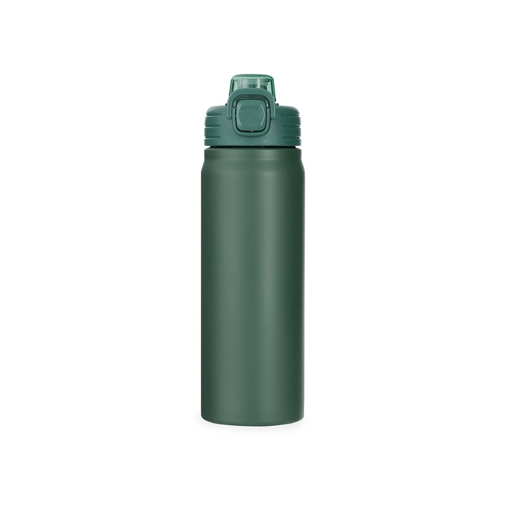 Descrição: Garrafa térmica 680ml CB 19065. Feita em inox 304, possui estrutura de parede dupla e vedação a vácuo, permitindo a conservação da temperatura de líquidos por mais tempo. Conta com tampa rosqueável com trava de segurança, botão de acionamento para abrir a tampa protetora do bocal e alça para transporte. Acompanha um canudo plástico para encaixe no interior da garrafa.
