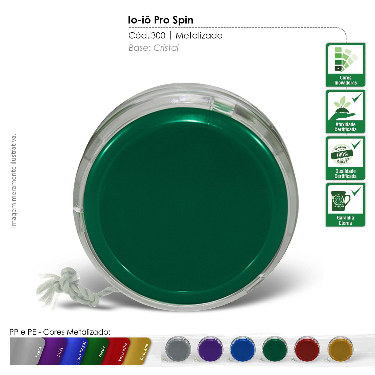 Descrição: Ioiô Pro Spin CB 300 de alta performance base maciça em Plástico Premium (PS Cristal) fixada por ultrassom e laterais acopladas em Plástico Premium (PP), cordão duplo em algodão trançado. Disponível nas versões: Metalizado, Neon e Standard. Consulte cores disponíveis.