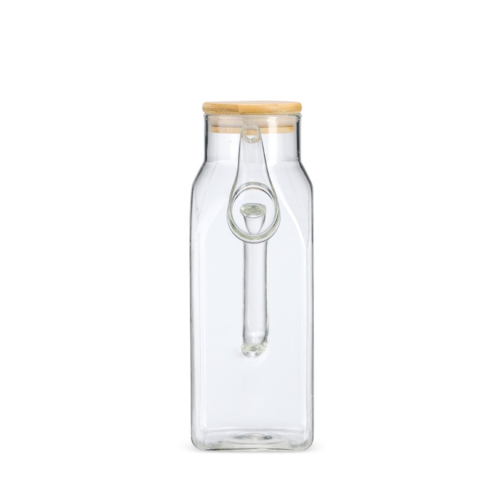 Descrição: Jarra de vidro borossilicato 1L CB 9130 material resistente à oscilações de temperatura. Possui marcação de capacidade no corpo do recipiente e tampa de bambu com anel de vedação. Acompanha tampa protetora para o bico em silicone.