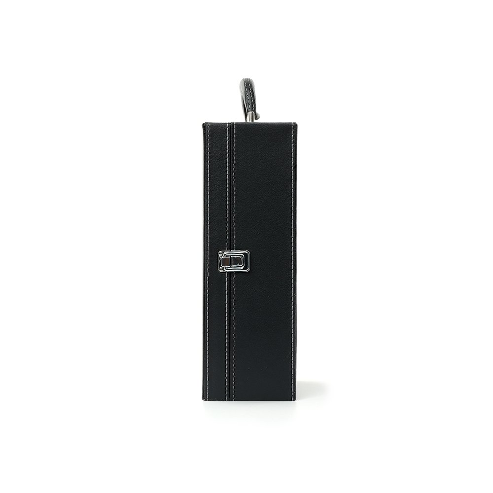 Descrição: Kit vinho 4 peças CB 3494 em maleta de couro sintético com duas repartições para garrafas. Contém saca-rolhas metálico, bico condutor com tampa, cortador de lacre e wine collar. Maleta com alça e trava de segurança, área interna revestida de veludo com suporte em couro sintético e velcro em cada repartição para fixação das garrafas.