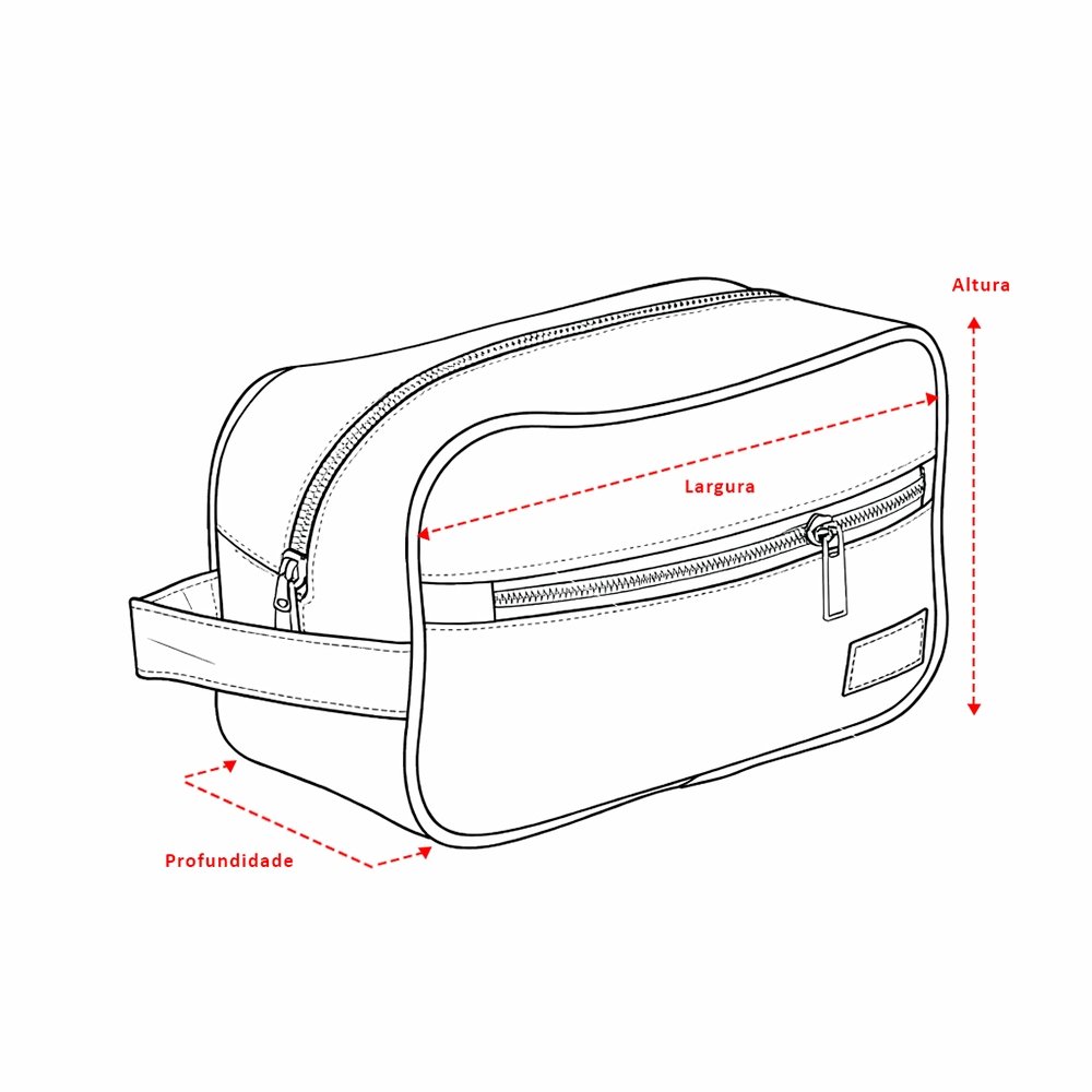 Em segundo lugar, o compartimento principal com três bolsos internos amplia a capacidade de organização, enquanto a alça lateral facilita o transporte e reforça a usabilidade contínua do produto. Dessa forma, a nécessaire incentiva o uso recorrente e prolonga o contato do público com a marca. Paralelamente, a plaquinha costurada em couro sintético agrega sofisticação ao acabamento e eleva o valor percebido do brinde.