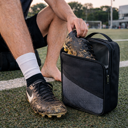 Em segundo lugar, o fechamento em zíper assegura proteção eficiente aos calçados esportivos, ao passo que o bolso frontal em tela amplia a capacidade de organização, permitindo separar itens menores com agilidade. Dessa forma, o transporte se torna mais higiênico e estruturado, agregando valor à experiência do usuário e reforçando a percepção de cuidado com cada detalhe.