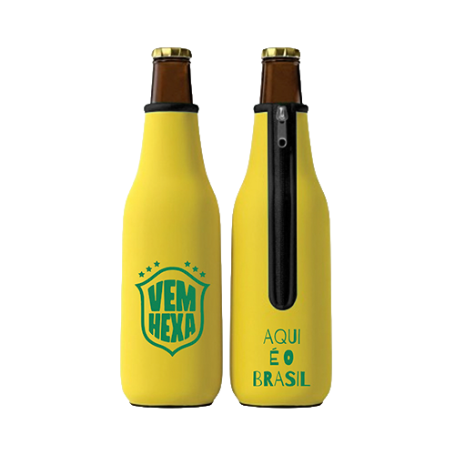 Descrição: Porta long neck com zíper Copa do Mundo em material flexível com isolamento térmico, projetado para manter a sua bebida gelada por mais tempo e facilitar o manuseio em festas, eventos e no dia a dia. Com fechamento em zíper que garante ajuste seguro e acabamento reforçado, oferece conforto térmico e boa pegada, ao mesmo tempo em que a área de personalização destaca a marca durante o uso. Como item promocional, entrega utilidade contínua e presença constante em momentos de consumo, reforçando o vínculo da marca com experiências positivas.