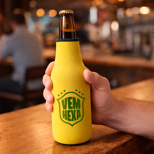 Primeiramente, o Porta Long Neck é um brinde promocional funcional e de alto impacto, ideal para campanhas que buscam associar a marca aos momentos de torcida e celebração durante a Copa. Além disso, ele se integra perfeitamente a eventos, festas e ativações, garantindo presença contínua junto ao público. Nesse contexto, a marca se mantém visível enquanto proporciona conforto e praticidade no consumo.