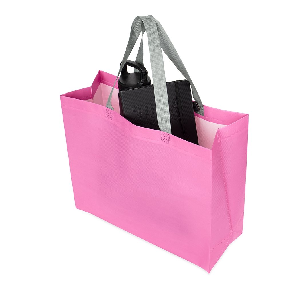 Em segundo lugar, o formato amplo e bem dimensionado permite o transporte confortável de brindes, materiais promocionais, compras ou kits corporativos, atendendo diferentes contextos de uso com eficiência. Além disso, a superfície lisa favorece a personalização em Silk Screen ou Transfer, garantindo boa definição gráfica, leitura clara da marca e impacto visual consistente ao longo do ciclo de uso.
