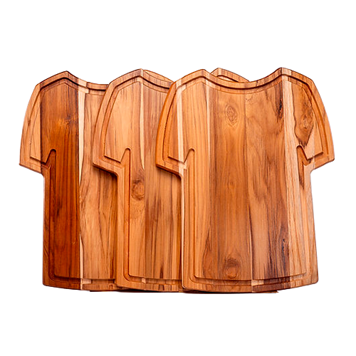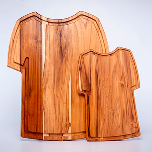 Descrição: Tábua grande formato camiseta CB 2885 desenvolvida para ampliar a experiência no preparo e na apresentação de alimentos com mais robustez, presença visual e funcionalidade. Produzida em madeira teca, reconhecida pela alta resistência e durabilidade, entrega acabamento superior e excelente performance no uso recorrente. Ideal para ações promocionais de maior impacto, brindes corporativos premium e kits gourmet diferenciados, é uma solução estratégica que fortalece o posicionamento da marca, aumenta o valor percebido e gera maior conexão com o público.